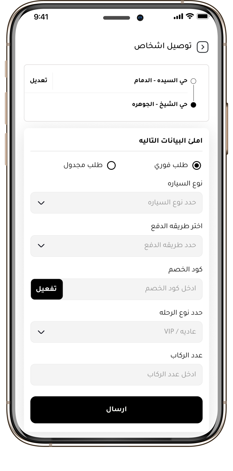 اطلب مشوارك بسهولة مع أقرب سائق وبأسرع وقت.